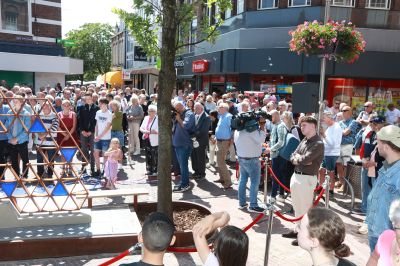 De onthulling trok een grote groep mensen naar de Sneker binnenstad. Velen waren zichtbaar emotioneel geraakt door de woorden die er gesproken werden.