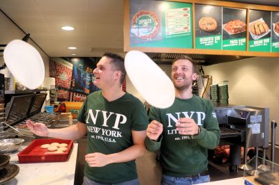 Fanmiddach (h)earlek interview had met bovenstaande pizzabakkers. Fanavend lekker foetballe: 7 teugen 7.