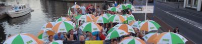 In Sneek zat de stemming er vanmorgen al vroeg in, niet in de laatste plaats door het enthousiasme van Clown Sander (Sander Balk), die als opperspreekstalmeester fungeerde. En uiteraard de Putkapel!