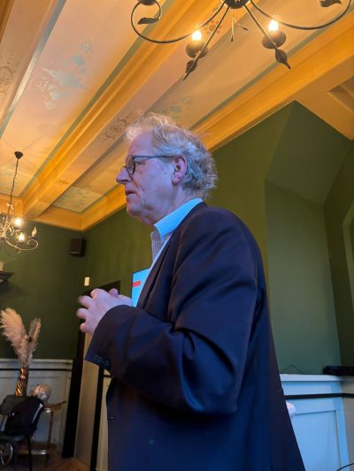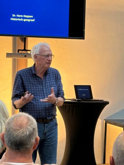 Dr. Hans Koppen, historisch geograaf, verzorgde gisteravond een boeiende lezing over het ontstaan van Sneek op het Waltaplein.