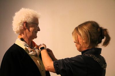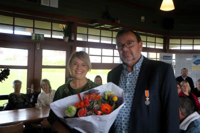 As laatste bin ik met weest naar ut fòlkstúnkompleks in’e Noarderhoek. Dêr in ut ferenegingsgebou kreech ‘Moeke Noorderhoek’ Nel Veldman de fersierselen opspeld. Nel is ok un súperfrijwilligster.
