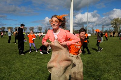 Op ut spòrtkompleks 'Schuttersheuvel '(Skiëtheuvel!) waren KOaningspeulen foar basisskoalkyndes. En ja hoar, gelukkech ok nòch (júte) saklopen op ut programma!