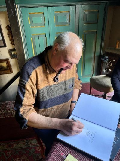 Na ut útskriëven fan al disse berichten bin’k in’e namiddach naar Kûbaard gaan. Dêr kreech kunstskilder Marin Sijbesma syn biografy ‘Romantisch realist’ fan skriëver Teunard van der Linden en Bram Dekker (Dekker Creatieve Media & Druk). We dronken un glas Port. Ut is en bliëft un bysòndere Martin, bij hem staat de tiid stil, terwyl de klokken deurtikke.