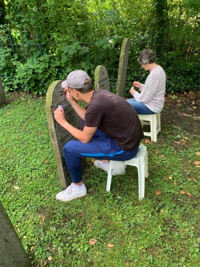 SNEEK-Een groep vrijwilligers heeft donderdag 30 mei de Joodse begraafplaats in Sneek opgeknapt. Dat was hard nodig. De meeste teksten op de matsevot (grafstenen) waren door de tand des tijds niet meer te lezen. De stenen zijn schoongemaakt en de letters weer opgeschuurd. De stenen die van oorsprong zwartgeletterd waren, zijn met stempel, penseel en inkt weer gezwart. Overhangend groen is verwijderd en ook het toegangshek tot de begraafplaats is afgesopt. Het resultaat mag er zijn.