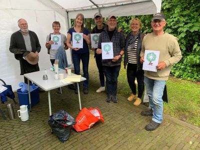 Het werk is verricht door een tiental vrijwilligers van de Stichting Boete en Verzoening. Zij werden beloond voor hun werk met een boomcertificaat van het Joods Nationaal Fonds. Dat betekent dat op naam van de vrijwilliger een boom wordt geplant in de Negev woestijn.
