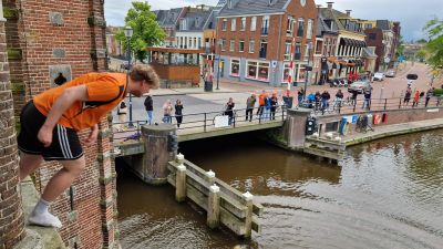 SNEEK- Na een prima 0-3 overwinning op Roemenië is het Nederlands XI-tal door naar de kwartfinale. Het duurde even, maar vanavond waren de eerste Oranje Kolkspringers bij de Waterpoort present om een feestduik te nemen in het nog steeds niet al te warme water. Fotograaf Jan Douwe Gorter was paraat en maakte de foto’s.