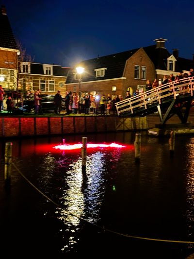 • Brekend Licht van Anne Fie Salverda aan de Havenstraat. Reflecties bewegen over gevels alsof er water door de straten stroomt.
