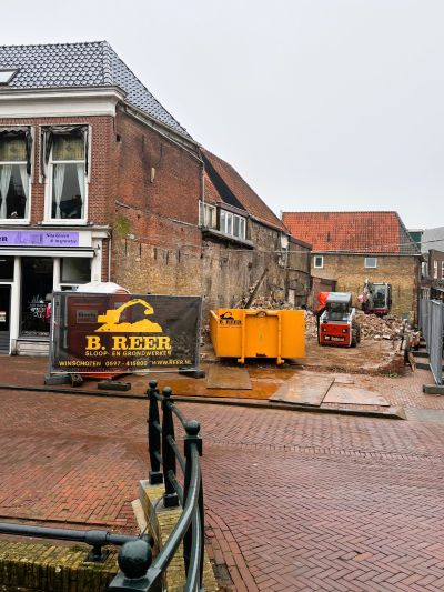 Op 20 mei 2022 skreef ik op de GrootSneek-site ut fòlgende bericht en plaatste onderstaande foto. Nou rúm 3 jaar later is de sloop folop an'e gang en sal binnenkòrt de bou beginne. Su gaat dat in un stad.