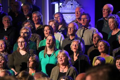 En dan was er aan het einde van het concert nog samenzang met het publiek. Naast It Frysk Folksliet, was er zelfs een canon (‘Dona nobis pacem’, oftewel Geef ons vrede) en het swingende ‘One World Song’. Kortom een groot muzikaal (bevrijdings) feest.