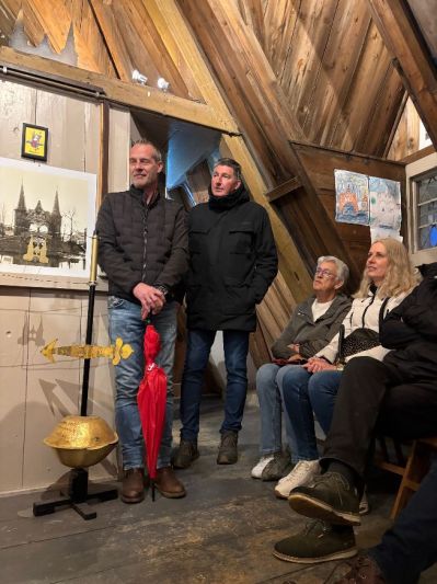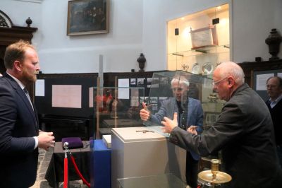 Een heel bijzonder moment vanmiddag was de overhandiging van de sleutels van de voormalige Synagoge uit Sneek aan wethouder Bauke Dam. Matthijs Graafland, archiefmedewerker van de Vereniging Historisch Sneek en beheerder van het Joods archief, kwam op het spoort van de sleutels en ook het oude muuranker, met de Davidsster, tijdens zijn speurtocht naar Joods verleden in Sneek.