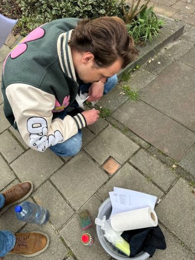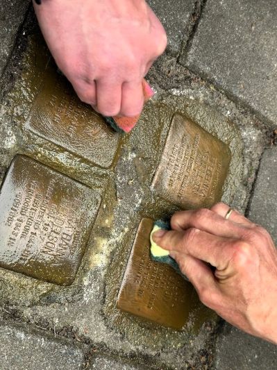 Met schoonmaakinstructies en een gezonde dosis betrokkenheid gingen de medewerkers vervolgens gezamenlijk op pad. Alle 25 stenen werden met zorg opgepoetst en letterlijk weer zichtbaar gemaakt voor voorbijgangers. “Het was ontzettend interessant en het geeft een goed gevoel om op deze manier iets bij te dragen. Zeer zinvol,” Bob Mannaart een van de deelnemers.