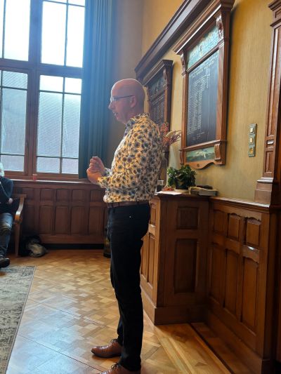Voorafgaand aan de lezing werd 1 minuut stilte in acht genomen in verband met het overlijden van de 88-jarige Paus Franciscus. Vanmorgen overleed de RK kerkvorst.