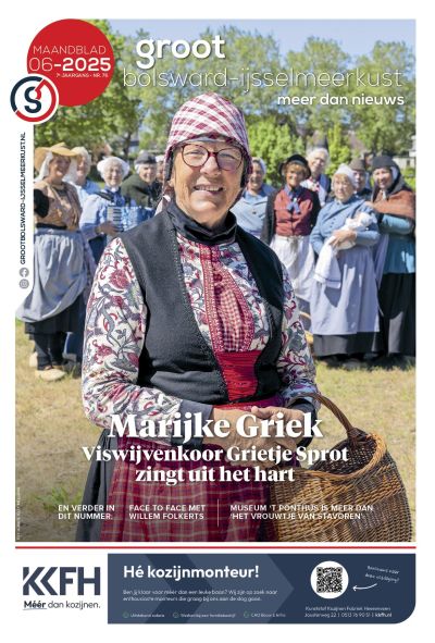 Fandaach kwam de papieren GrootBolsward/IJsselmeerkust ok út. Met op’e cover Marijke Griek, één fan’e 3 oprichtsters fan Fiswievekoar Grietje Sprot. Prachterge foto’s fan Jelly Mellema en fraaie opmaak fan Bente Vallinga. Un moai foarbeeld om siën te laten wêr’t tegare met folle overtúging an werke tòt resultaat leide kan!