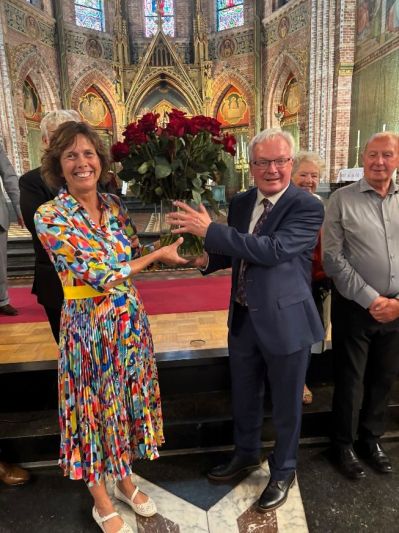 Dertig rode rozen voor de jubilerende pastoor