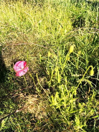 De omgeving het hier en dêr wat surrealistys met al dy groate grasbalen in plestyk op ut pas maaide laan. De fogels en de bermbloemen, je súden der ‘lyrisch’ fan wurde. Mar dat gaat mij krekt even te fer. Bin’k te nuchter foar.