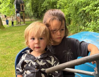 Twee Amsterdamse jonges dy’t met folle teugen geniete op’e fantastise kynderboerderij fan Sneek. Moaie wurde de dagen nyt.