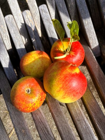 Toen ik disse rike ( wie ut kleine nyt eart is ut groate nyt wear') oogst fan oans boomke plukte kreech ik der suver appelwankjes fan!